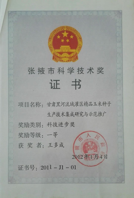 2012年榮獲張掖市科技進(jìn)步一等獎(jiǎng)…